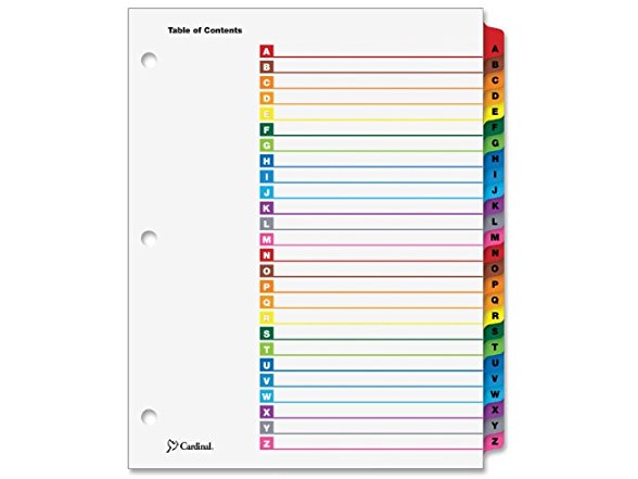 Cardinal OneStep Index System, 26-Tab, A-Z, Multi-Color, 1 Set