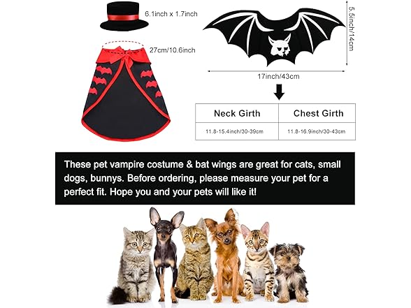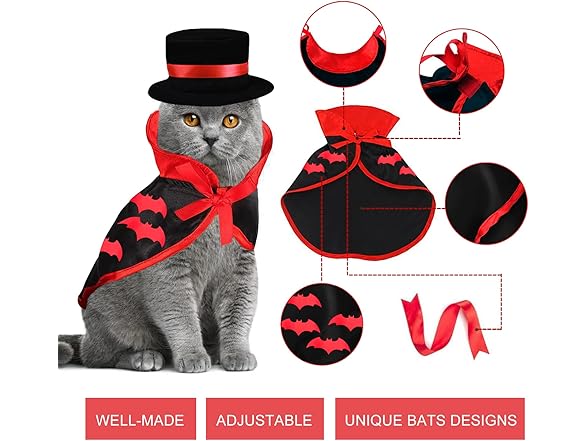 The classic black-and-red pet clothes are very suitable for your cats or dogs to hide their tracks in the dark. No matter what color your pet is, the vampire pet outfits can match pets well and make them look smart. Magic power from the vampire pets will attract everyone's attention