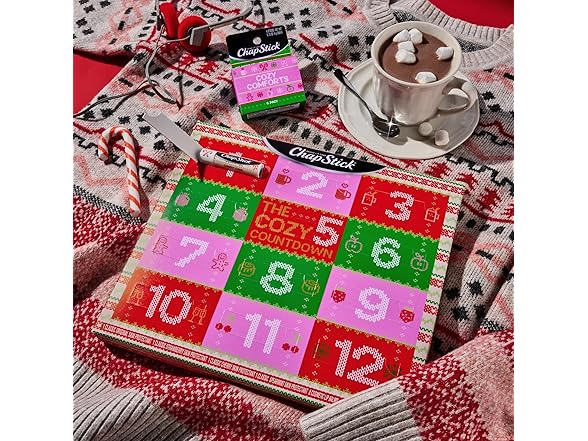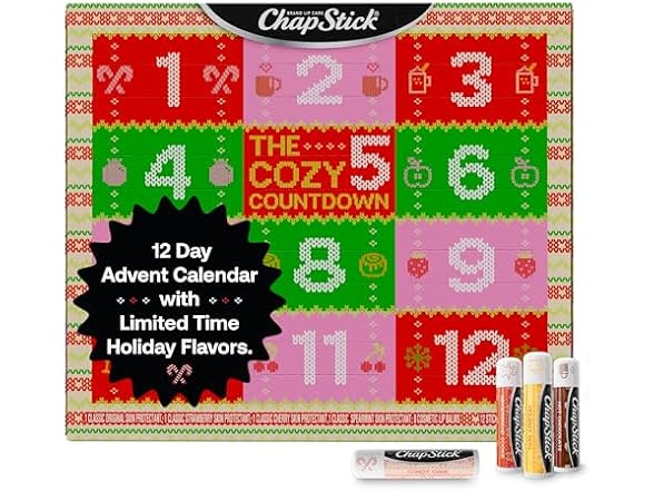 (1) ChapStick Advent Calendar 2025 – Cozy Countdown to Christmas, Variety 12-Pack Lip Balm Gift Set, Holiday Gifts for Women, Men, Teens, Coworkers, Grandpa & Grandma Gifts, 0.15 Oz Ea
