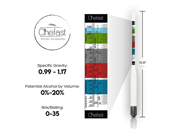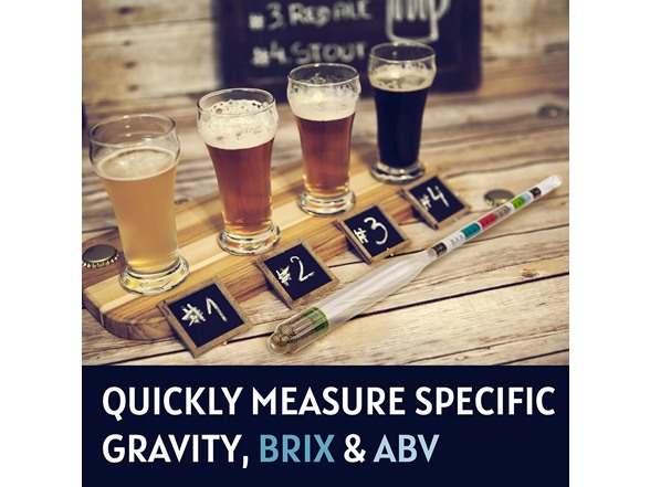 - EASY, SAFE AND ACCURATE: Measuring specific gravity from 0.99-1.17, brix/balling from 0-35 and potential alcohol by volume from 0%-20%, this essential proofer is easy to read and free of mercury, lead and other hazardous compounds. It’s your environmentally-friendly way to make pinpoint measurements of your home brew. Please Note: Our hydrometer will NOT work with maple syrup, moonshine, or other high-alcohol content home distilling beverages.
