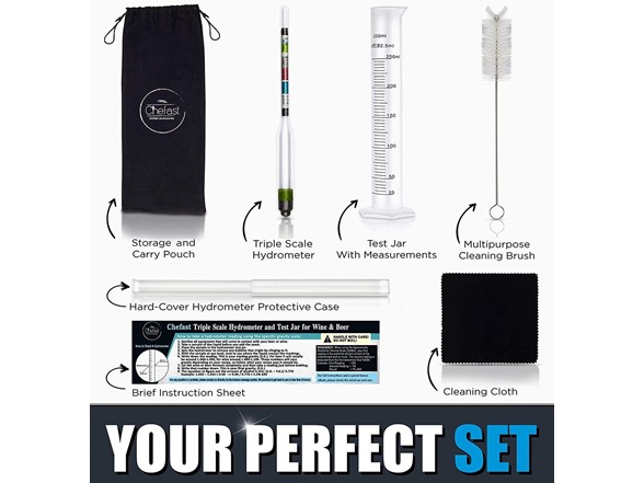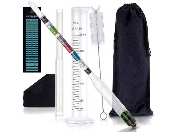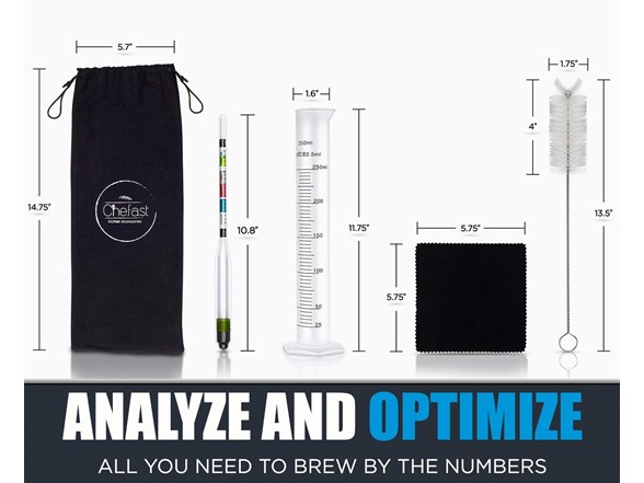 - SPECIAL EXTRAS INCLUDED: In this tester kit, we’ve also included a few handy home-brew helpers that could really save the day. The cleaning brush will make short work of cleaning your plastic test tube and other brewing equipment; the cloth helps you keep the hydrometer clean; and the canvas carry bag keeps it all together so you’re not running around hunting for a key component.