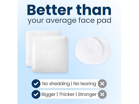 - No More Shedding or Tearing Apart - Our Clean Extra Large Face Pads are no match for any cotton round, so gone are the days of facial pads that shed fuzzies and fall apart on you, even under pressure.