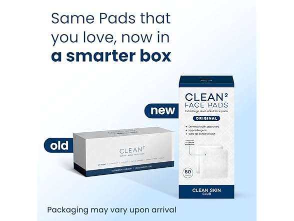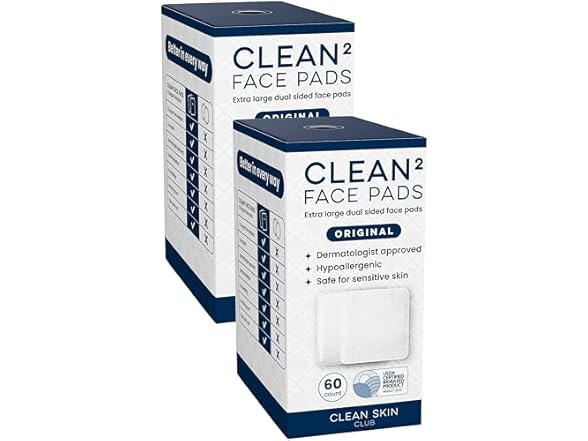 (1) Clean Skin Club Clean² Pads 2.0 [New & Improved Edges] Guaranteed Not to Shed & Tear Face Pads, Unique Triple Layers, Textured & Ultra Soft Side, Organic Disposable Cotton, Pair with Makeup Remover