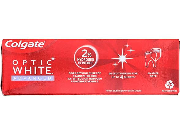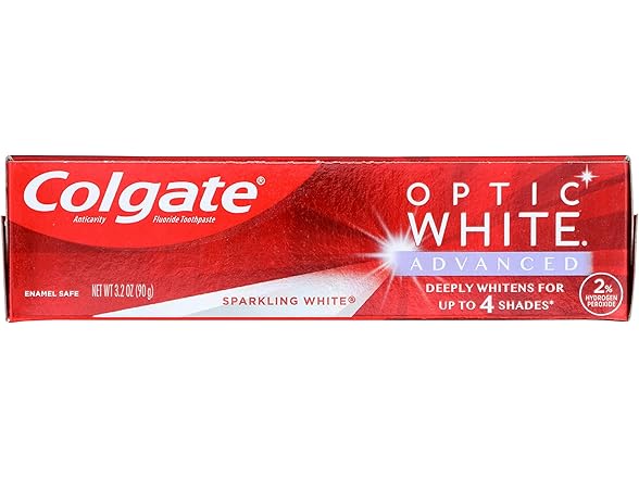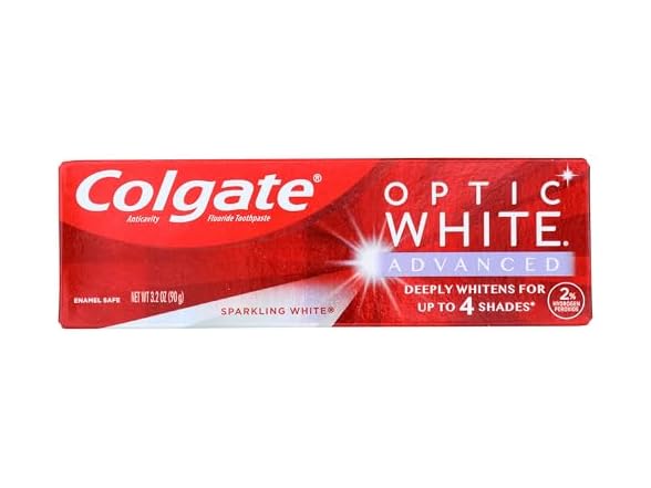 In the Box:- (1) Colgate Optic White Advanced Teeth Whitening Toothpaste, Sparkling White, 3.2 Oz (Pack of 1)
