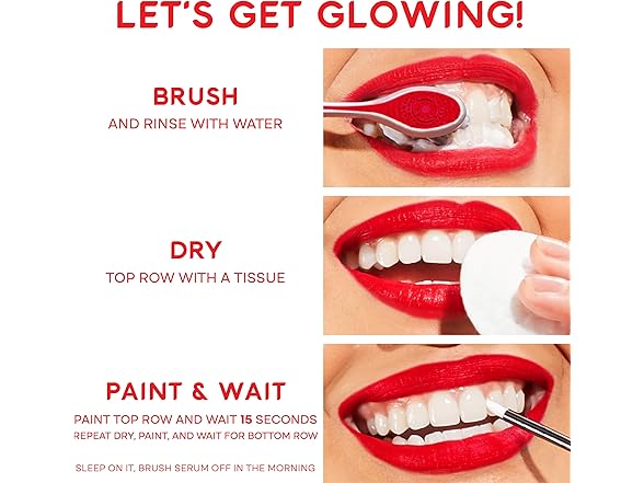 - To use, dry your teeth after brushing and paint the whitening gel on each tooth, then let the gel dry overnight and brush your teeth when you wake up
