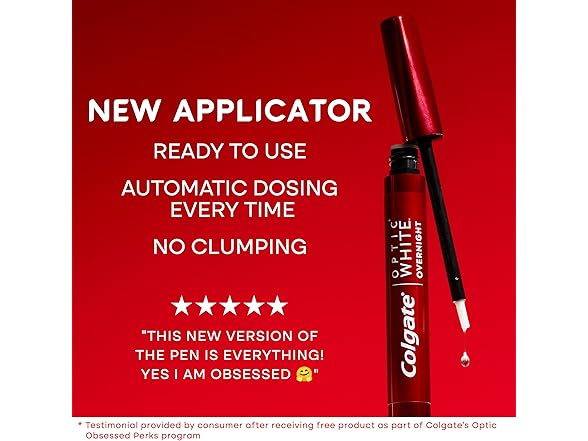 - The Colgate whitening pen features a new precision applicator to easily target the surface of each tooth with the quick-drying whitening gel formula