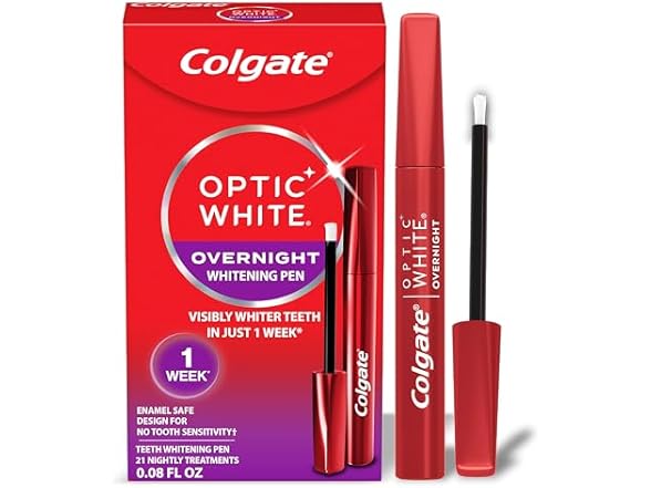 - Includes one (1) 0.08 fl oz Colgate Optic White Overnight Teeth Whitening Gel Pen, 21 Nightly Treatments