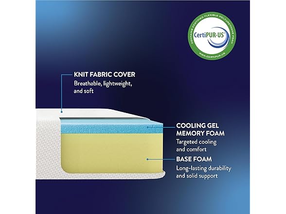 Ideal for spaces where a lower profile is needed, the Best Price Mattress Memory Foam Mattress provides comfort, cooling, and support in a compact design. Perfect for dorm rooms, guest bedrooms, youth bedrooms, or other cozy spaces, the gel-infused memory foam adapts to your body, delivering personalized comfort while maintaining a cool sleep environment. Made with CertiPUR-US certified foams and an OEKO-TEX certified cover, this mattress offers peace of mind and lasting quality. It brings you an ideal balance of breathability and support to offer relaxation and rejuvenation night after night.