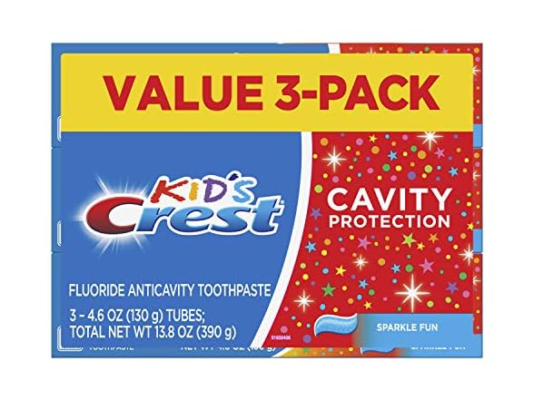 Crest Kid's Cavity Protection Toothpaste, Crest Kids Toothpaste, For Children And Toddlers 2+, Sparkle Fun, 4.6 Oz (Pack of 3), Toothpaste For Kids, Packaging may vary