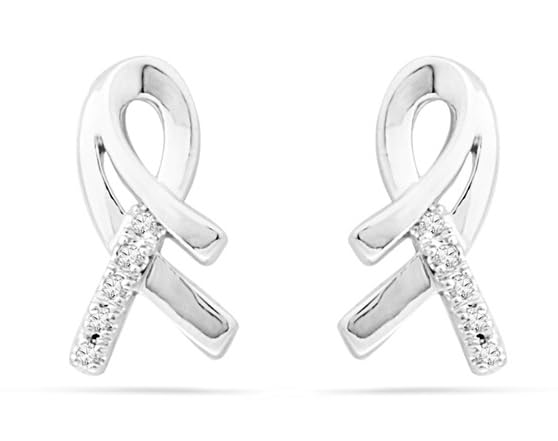 Dia Accent Sterling Silver Ribbon Stud Earrings