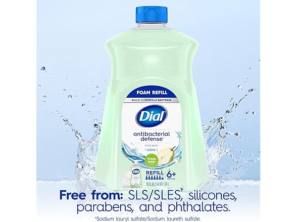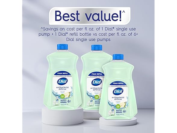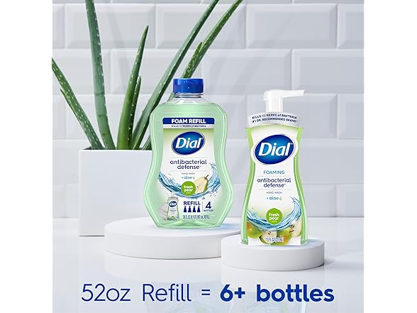 - User-Friendly for Every Sink: Whether at the kitchen sink, bathroom counter, or shared spaces, Dial hand soap is great for high-traffic areas. One 52 fl oz foaming hand soap refill includes enough to refill 6+ bottles of 7.5 fl oz Dial foaming hand soap