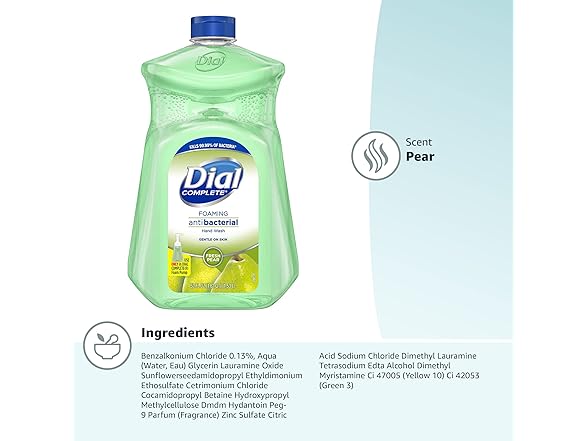 In the Box: (1) Dial Antibacterial Foaming Hand Soap Refill, Fresh Pear, 52 fl ozSpecs