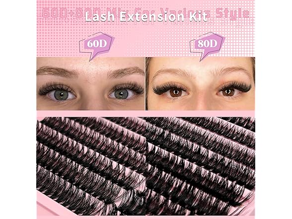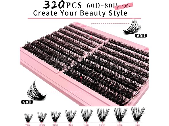 DIY Lash Extensions Fluffy Lash Clusters 60D+80D Individual Lashes 320pcs Cluster Eyelash Extensions 9-16MM DIY Lash Extension D Curl Mink False Eyelashes Clusters