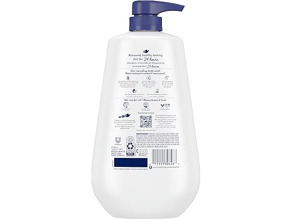 A body wash that gives you lotion-soft feeling skin? Yep, you read that right. Dove Deep Moisture Body Wash is a new type of body care that does what it says. It delivers such deep moisture that your skin will feel lotion-soft long after you leave the shower. Think of it as a shortcut to lotion-soft skin that takes no shortcuts on skin-loving, hydrating ingredients. Let’s get deep to explain. Millions of 24hr Renewing MicroMoisture droplets with skin-natural nourishers and plant-based moisturizers absorb deeply and work with your skin’s natural renewal process to help retain and boost moisture for nourished, soft and healthy-looking skin. You can count on them to deliver a deep level of moisture that starts in the shower and lasts all day. We’re talking peak moisturization. Like iconic level moisture. Up there with Dove's iconic scent of care with gentle, fresh flowers, nourishing soft vanilla, and creamy, milky musks. But don’t take our word for it, try it for yourself. To use this rich, creamy body wash, squeeze into palms or loofah, massage onto skin, rinse, and step out of the shower feeling moisturized all over. And take a minute to touch that incredibly soft skin. Who else would you trust, but the #1 dermatologist-recommended brand (us!) to deliver a long-lasting, nourishing body wash? Plus it’s sulfate-free, paraben-free and packaged in a 100% recyclable bottle. Our Deep Moisture Body Wash is PETA approved, meaning we do not test on animals anywhere in the world.