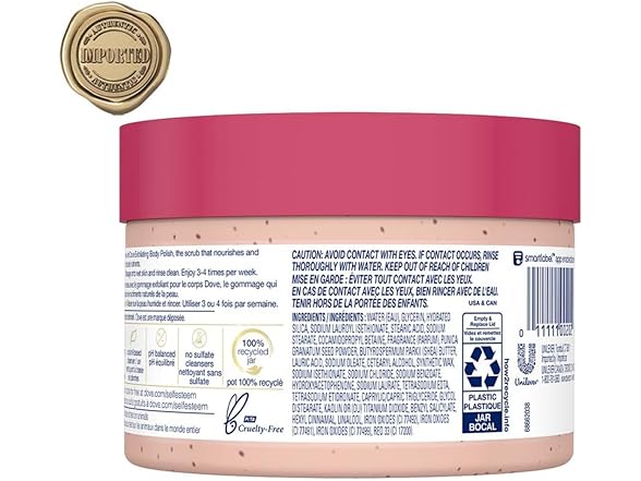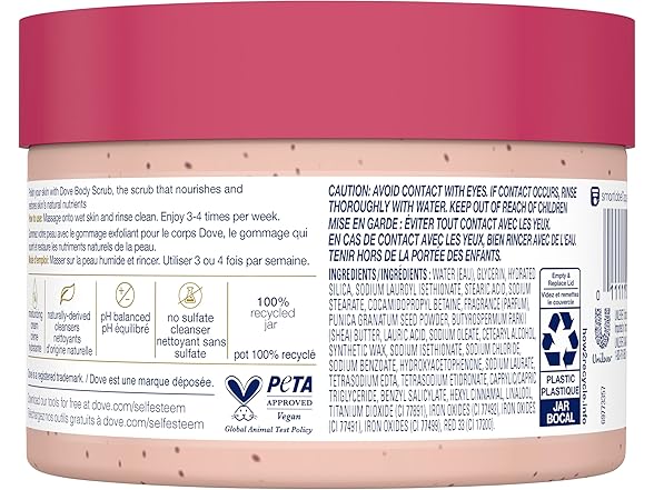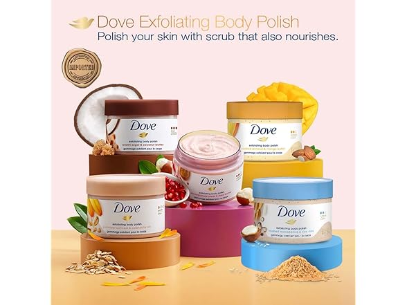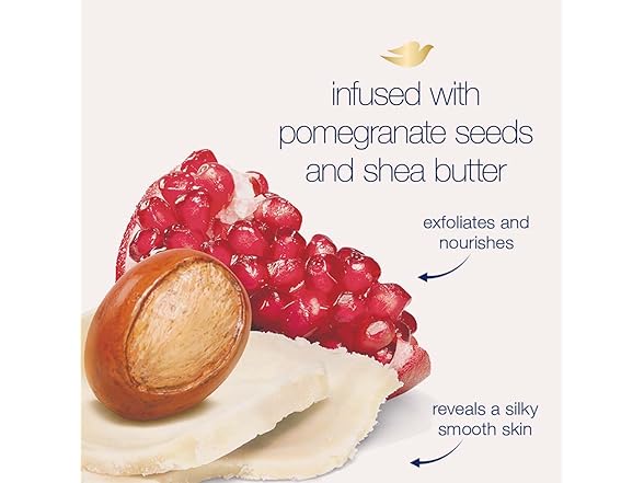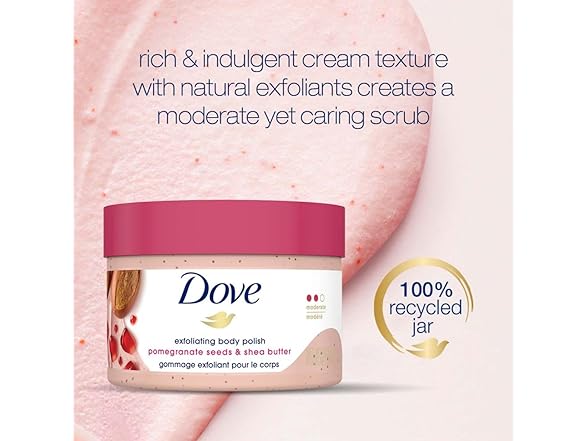 - REFRESHING FRAGRANCE - Dove Exfoliating Body Polish gives a burst of fruity pomegranate fragrance for a feeling of real-to-life freshness.