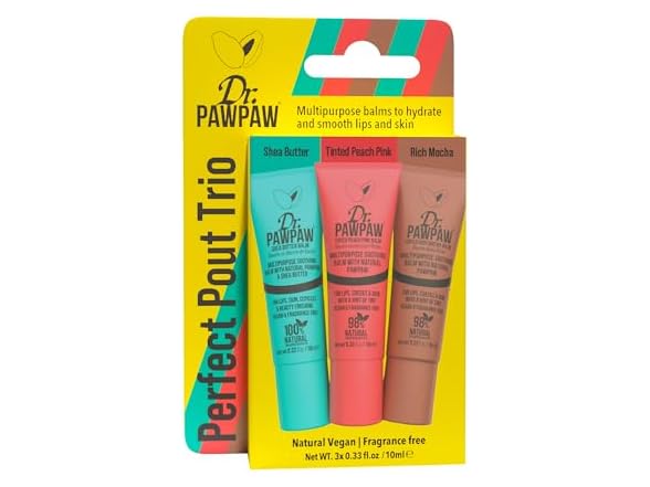 Experience the Mini Pout Trio including Lip Balm - Peach Pink, Lip Balm - Shea Butter, and Lip Balm - Rich Mocha. Packed with a powerful blend of pawpaw (papaya), Aloe Vera, Olive Oil, and Castor Oil, this set leaves lips and skin feeling irresistibly soft and soothed. Featuring the Shea Butter Balm, a 100 percent natural, clear multipurpose formula that deeply nourishes lips, skin, and hair with rich, indulgent Shea Butter. Add a hint of color with the Tinted Peach Pink Balm, a 98 percent natural, buildable balm that gives lips, cheeks, and eyelids a soft, radiant shine. Finish your look with the Tinted Rich Mocha Balm, offering a warm, deeper tone for easy, everyday radiance.