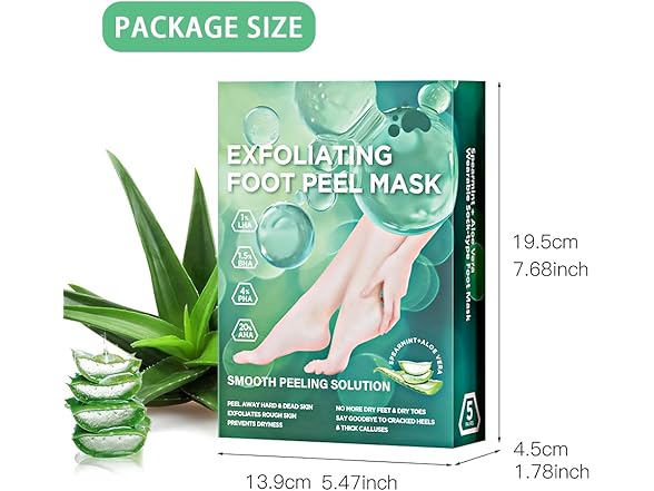 Dr.Pedi Foot Peeling Mask Exfoliating Foot Masks for Dry Dead Skin and Calluses Removal Aloe Vera Foot Spa Treatment for Soft Smooth Feet (5 Pairs)