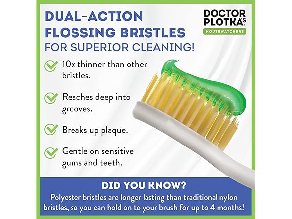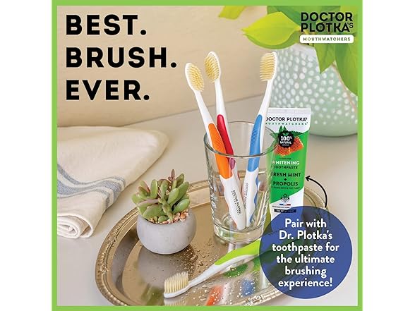 - SOFT BRISTLE TOOTHBRUSH Dr Plotka’s toothbrush is quite simply the BEST.BRUSH.EVER! The extra soft, multi-layered bristles break up plaque and sweep away food and residue that other brushes miss - leaving your teeth looking bright and feeling noticeably cleaner, every time you brush. Pair with Dr Plotka’s All Natural Whitening Toothpaste for the ultimate brushing experience!