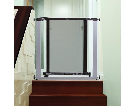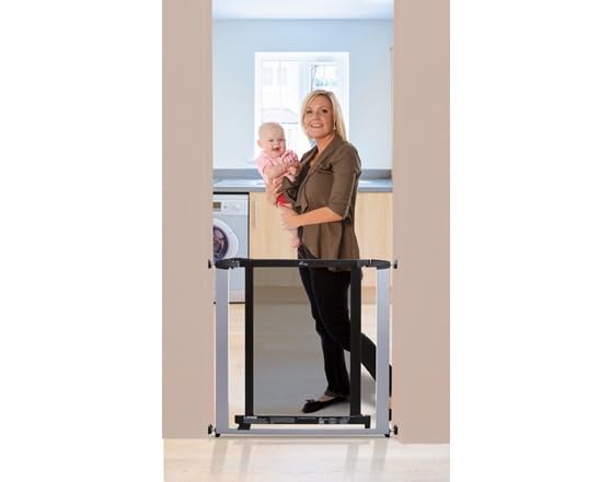 - This stylish pressure mounted gate has a tinted polycarbonate panel to be functional and attractive at the same time while children can easily watch what is going on