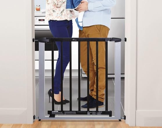 The metal and wooden safety gate is easy to use for adults, with a simple one-handed opening – perfect for carrying in the shopping, washing and anything else