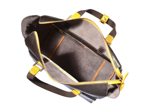 Be noticed in this urban, young and fashionable leather holdall. The bag is unlined and unstructured making for a slouchy look and comfortable fit. Detachable canvas webbing shoulder strap and two canvas top handles. Compact enough to fit into carry on.