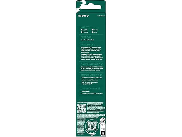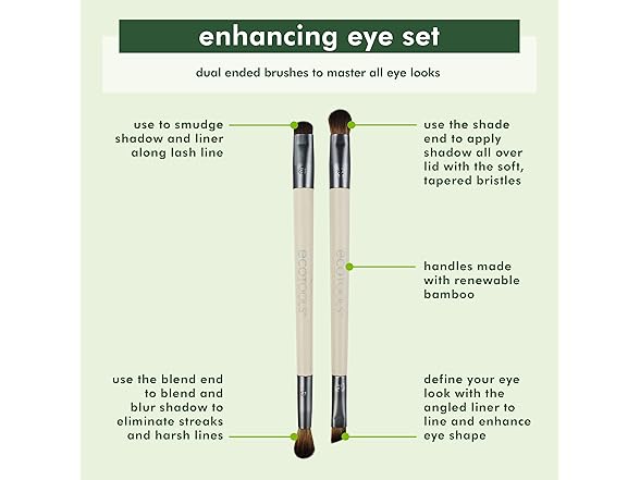 - EcoTools Enhancing Eye Makeup Brush Set creates the perfect eyeshadow look with: (1) Shade + Define Eye Brush Duo and (1) Smudge + Blend Eye Brush Duo – ideal for eye makeup application