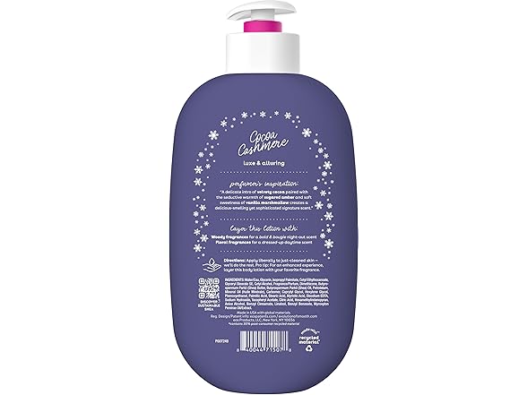 - COCOA CASHMERE FRAGRANCE: Cocoa Cashmere wraps skin in notes of rich cocoa, warm vanilla marshmallow, and cozy amber for a soft, sweet, and luxurious experience