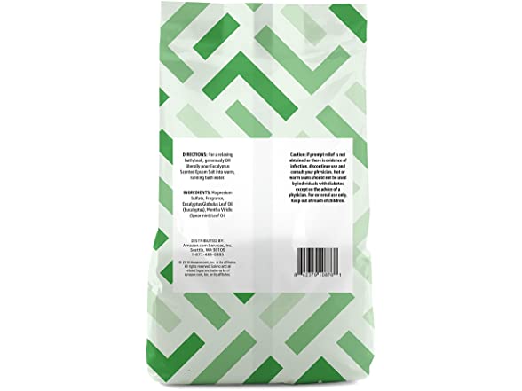 Add Solimo Epsom Salt Soaking Aid to a warm bath or foot soak to help soothe sore muscles and aid in relaxation. Our invigorating scent contains Eucalyptus Globulus leaf oil (eucalyptus) and Mentha Viridis (spearmint) leaf oil.