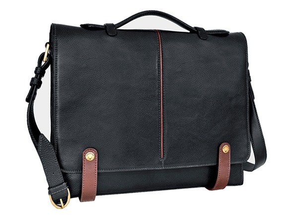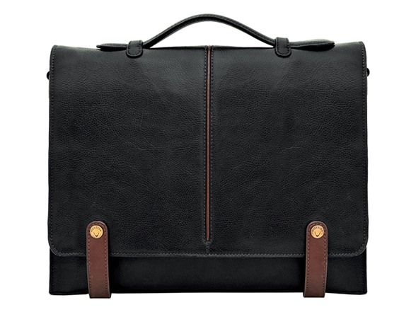 Sleek and fashionable leather briefcase large enough to fit a 15 inch laptop and all your files and accessories. The briefcase has detachable leather shoulder straps and a leather top handle.