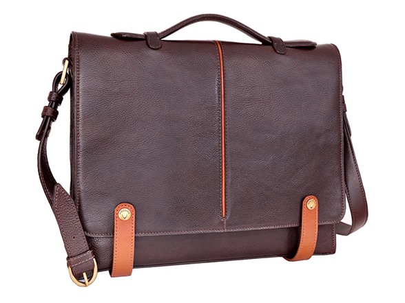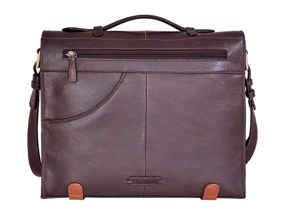 Sleek and fashionable leather briefcase large enough to fit a 15 inch laptop and all your files and accessories. The briefcase has detachable leather shoulder straps and a leather top handle.
