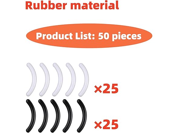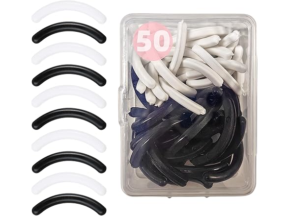 Eyelash Curler Refill Pads - Rubber Silicone Rubber Universal Eye Lash Curler Replacement with Clear Storage Box (Multicolor) (Rubber Black and White -50 Pieces)