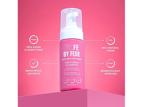 Fit.Fe By Fede The Power-Cleanser Foaming Face Wash - Foaming Facial Cleanser for Women - Hydrating Face Wash for Women - Vegan Skin Care - 5.07 oz
