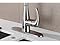 Fluid and quiet retraction of the braided black nylon hose automatically docks the spray head back into place