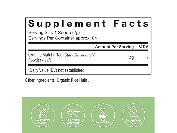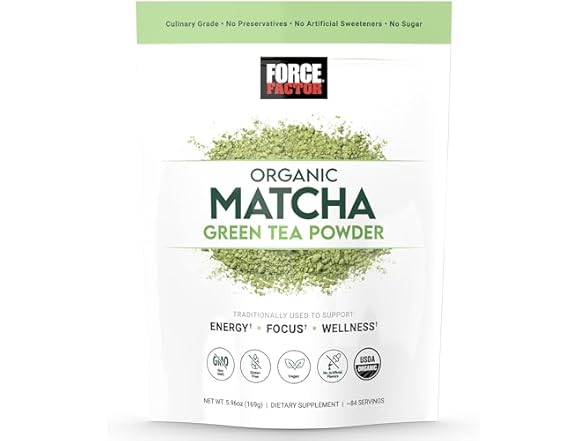 FORCE FACTOR Organic Matcha Green Tea Powder for Energy, Focus, and Daily Wellness, Culinary Grade, USDA-Certified Organic, Rich and Delicious Flavor 169g, 84 Servings