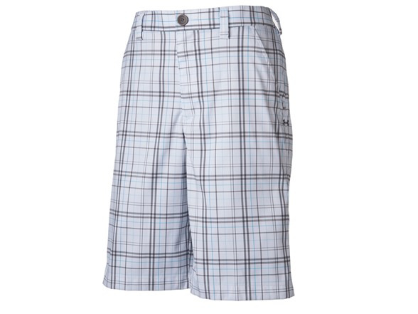 (1) Under Armour UM6335000 Men's Forged Plaid Shorts, White/Graphite
