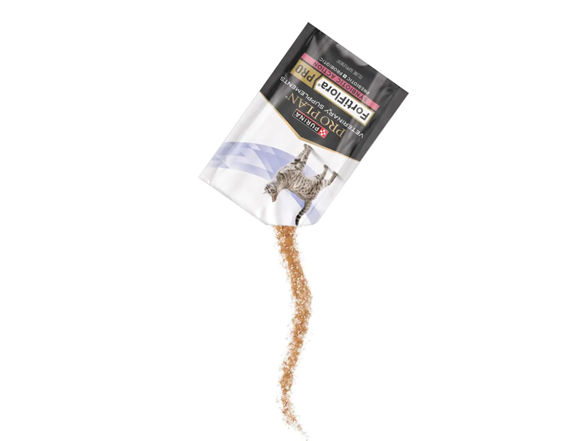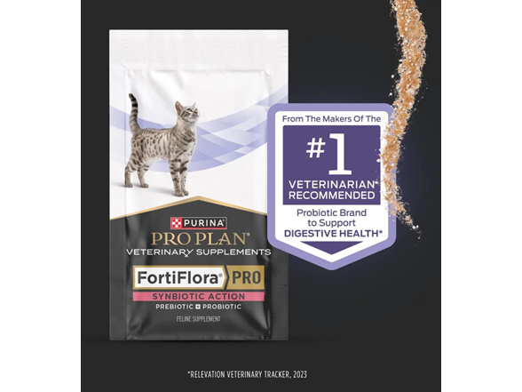 Give your cat’s digestive health the support she needs by introducing Purina Pro Plan Veterinary Supplements FortiFlora Pro Synbiotic Action probiotics for cats. This cat supplement probiotics powder contains a powerful combination of pre and probiotics for digestive health. This blend aids in the management of cats with diarrhea, with probiotics to nourish your cat’s gut and prebiotic fiber to support a healthy microbiome. Each packet of this cat digestive health supplement contains the prebiotic fiber psyllium to stimulate the growth of beneficial gut bacteria, including Lactobacillus and Bifidobacterium species. FortiFlora Pro Synbiotic Action is from the makers of the number 1 probiotic supplement recommended by veterinarians to support digestive health (Relevation Veterinary Tracker, 2023). The science behind our products represents a collaboration among Purina nutritionists, researchers and veterinarians. Give your cat FortiFlora probiotics for cats and support their digestive health.