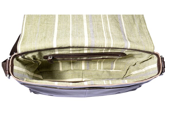 - Lining: Hidesign's signature 100% cotton green striped lining.