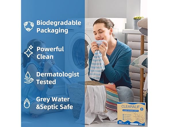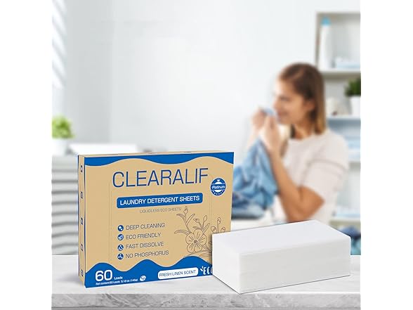 Laundry Detergent Sheets Up to 60 Loads, Fresh Linen - Great For Travel, Apartments, Dorms, No Plastic, Sustainable, Biodegradable-New Liquid-Less Technology - Lightweight