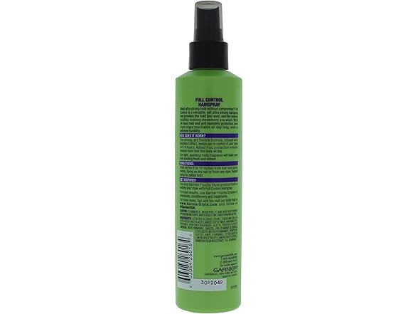Want ultra strong hold without compromise? Garnier Fructis Style Full Control Anti-Humidity Non-Aerosol Hairspray is a versatile, yet ultra strong hairspray that provides the hold you need, and the natural, healthy-looking movement you want. With 24 hour hold and anti-humidity protection, your style stays touchable all day long, even in extreme humidity. HOW DOES IT WORK? Our strong, yet flexible hairspray formula, infused with natural Bamboo Extract, keeps you in control of your style for 24 hours. Added frizz protection ensures bounce-back hold that lasts all day. Our light, sparkling fruity fragrance will leave your hair smelling fresh and vibrant. GET INSPIRED! Use any Garnier Fructis Style product before setting your style with Full Control Hairspray. For best results, use Garnier Fructis System of shampoos, conditioners and treatments. For more looks, tips and fun visit our Style Hub. • Anti-humidity non-aerosol hairspray provides 24 hour ultra strong bounce-back hold and frizz protection • Strong yet flexible formula is infused with Bamboo Extract • Provides natural, healthy-looking movement for style that stays touchable all day long, even in extreme humidity • Light fruity fragrance Hold bottle 8 to 10 inches from hair and spray evenly. Spray on dry hair to finish any style. Repeat spray for added hold. CAUTION: Flammable. Avoid fire, flame and heat during application and until hair is fully dry. Avoid spraying in eyes.