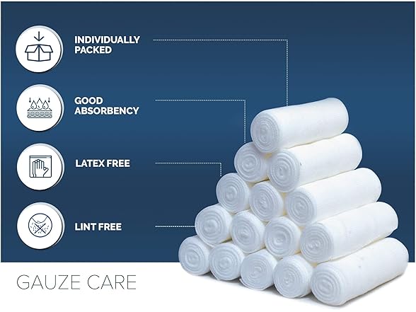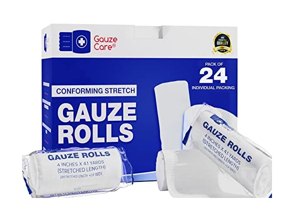 In the Box: (1)  Gauze Rolls Pack of 24 – Premium Quality Lint and Latex-Free 4 inches x 4.1 Yards Conforming Stretch Bandages Designed for Effective Wound Care & Comfort - Ideal for use as a Mummy wrap