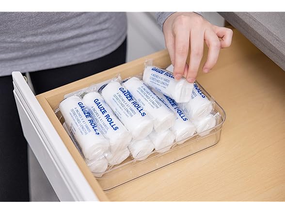 Product Specifications: Width: 4 inches Stretched length: 4.1 yards Unstretched length: 2.4 yards Material: Polyester-Cotton Pack Size: 24 Non-Sterile GauzeCare bandages are a must-to-have item of your first aid kits at the home, office, or car. The large gauze rolls’ 4 inches width ensures the optimum coverage and grip over the wound dressing and the wound itself, which the other 2 inch or 3-inch gauze wraps are unable to provide. Moreover, they measure approx. 2.4 yards without any stretch and around 4.1 yards when stretched, hence allowing the multiple layering of wrapping gauze over the affected areas. Compressed Gauze’s primary function is to secure the sterile wound dressings and maintain optimum pressure over the wound for fast healing. Moreover, their usage is found in holding burns’ dressing and as a splint for the low-tier muscle sprains. They can also be used either as a boxing gauze for hands or wrapped up during workouts around the pressurized joint areas to provide support to muscles or joints. Moreover, the first aid gauze roll can also be used for your pets’ wounds and injuries. Did you not have the time to buy costumes for Halloween? Not to worry at all, as you can use our 24 pack bulk gauze to fulfill your mummy clothe needs. Use it to mummify yourself or your kids at quite an economical price and easy mobility offered by our stretchy mummy gauze wrap. However, kindly make sure that the stretch is of bearable pressure and is not causing any discomfort, especially when dealing with kids. Caution: These bandages are used to secure the sterile wound dressings, and cannot be used directly over the open wounds. Moreover, for ease and convenience, use a pair of medical scissors to cut the required length of wound packing gauze and a strip of surgical tape to safely secure it. For more information, please refer to the backside of the box.