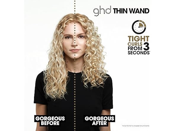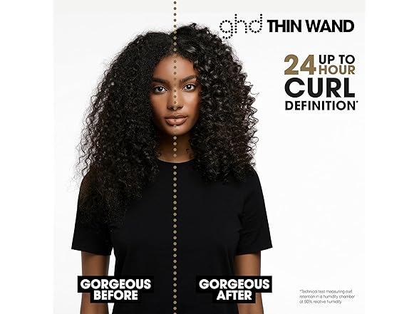 - CURL, BRUSH, DANCE WITH THIN 0.5" BARREL ― Amp up your curls with the ghd 0.5" Thin Wand creating tight curls from 3-seconds with up to 24-hour curl hold once the hair is wrapped around the barrel.