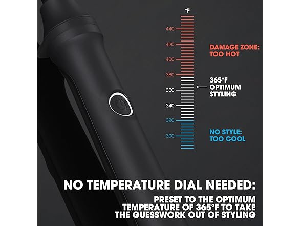 - PTC HEATER TECHNOLOGY WITH SAFER-FOR-HAIR TEMPERATURE ― No more guessing the correct styling temperature! Our breakthrough PTC heater technology monitors heat across the whole barrel every 20 seconds to ensure even distribution and lock in your curls at the optimum temperature of 365°F. Any hotter damages the hair, any cooler and the result is compromised.