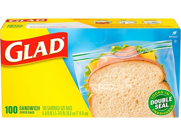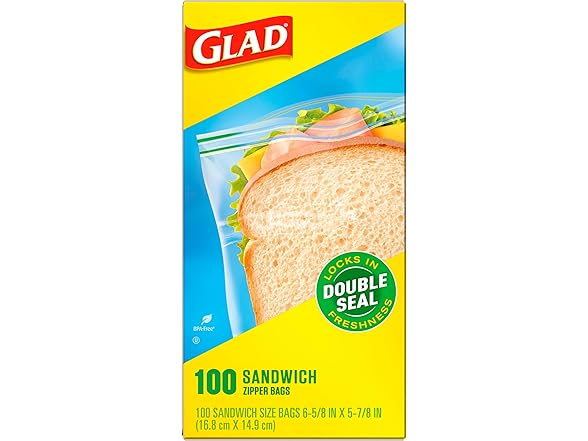 - GLAD ZIPPER SANDWICH BAGS: Zip, glide & go with Glad Zipper sandwich bags as while sealing in freshness & securing your favorite foods, these flexible, baggies are BPA free & microwave safe