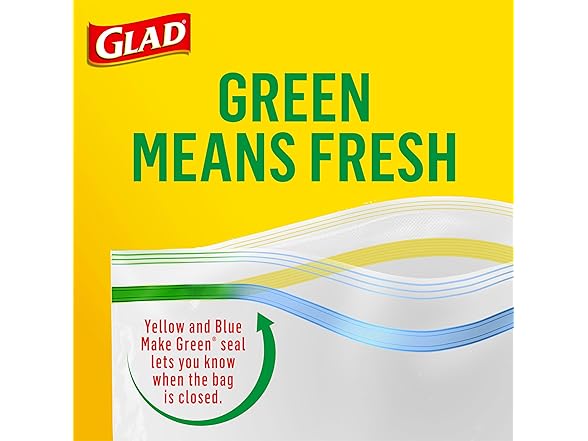 - DOUBLE SEAL LOCK ZIPPER: With a quick, easy glide of the Yellow & Blue Make Green Seal, Glad sandwich bags provide an airtight lock with the mult-ridge double seal zipper to prevent every leak & spill