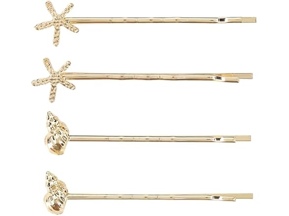 (1) Gold Hair Pins - Elegant Hair Clips for Women, Set of 4, Sea Shells