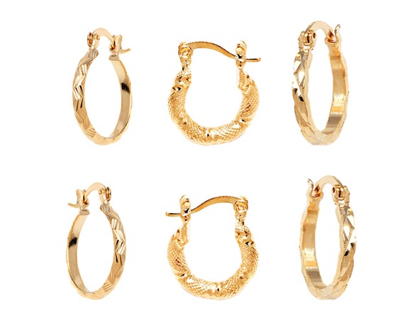 (1) 18K Gold Plated Gold Set of 3 Textured Hoop Earrings