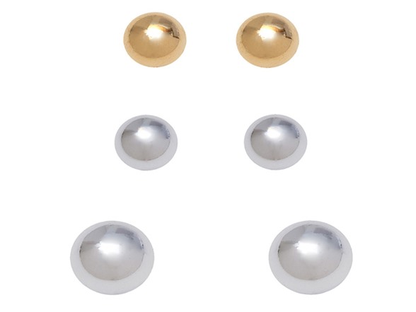 (1) 18K Gold Plated Gold and Silver Ball Set of 3 Stud Earrings