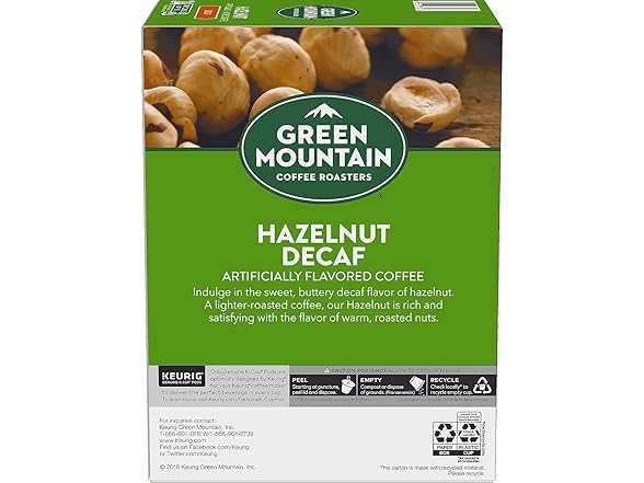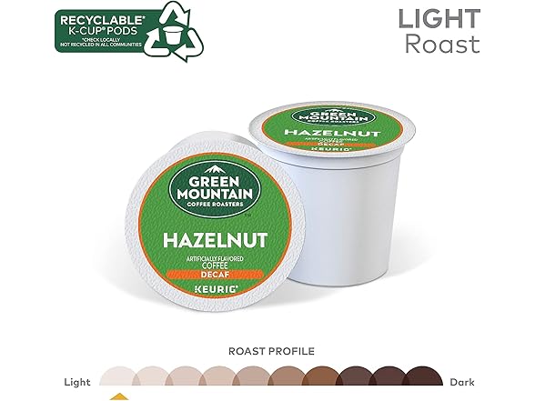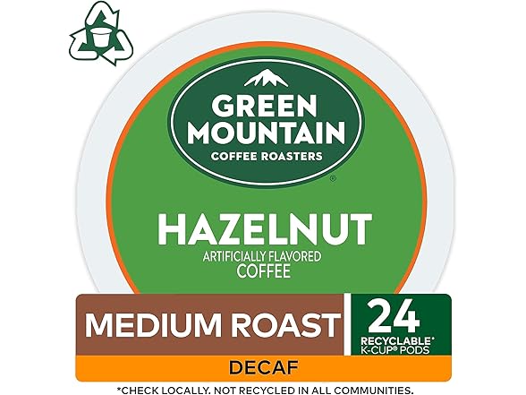- Green Mountain Coffee Hazelnut Decaf, Light Roasted, K-Cup Portion Pack for Keurig K-Cup Brewers, 24-Count