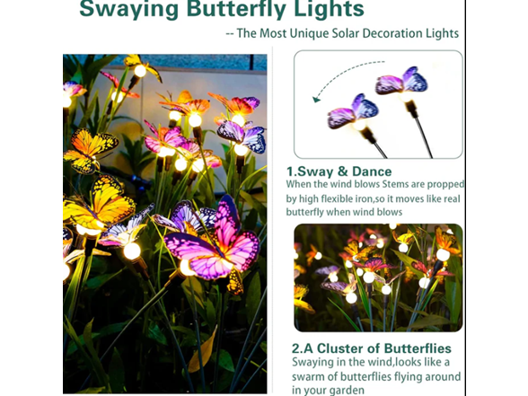 In the Box: (1) Hakol 4 Pack Solar Garden Lights Solar Outdoor Lights Swaying Butterfly LightSpecs